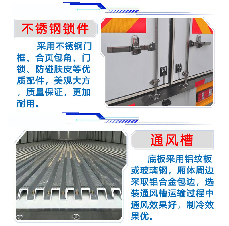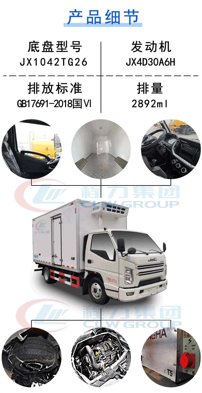 其他 | 车厢顶部封闭,不可开启,导流罩为选装件,选装无侧开门结构,选装厢体侧面开门样式,选装制冷量相同的制冷机组。ABS系统型号:APG3550500A,ABS系统生产厂家:浙江亚太机电股份有限公司;ABS系统型号: VIE ABS-II,ABS系统生产厂家: 浙江万安科技股份有限公司。侧防护采用冷弯型钢/Q235-B,螺栓连接,后防护采用冷弯型钢/Q235-B,焊接连接,后防护截面高度尺寸100mm,截面宽度尺寸50mm,下边缘离地高度420mm。发动机型号/油耗申报值对应关系为:JX4D30A6H/11.4L/100km,JX4D30C6H/11.4L/100km,JX4D30B6H/11.4L/100km。 |