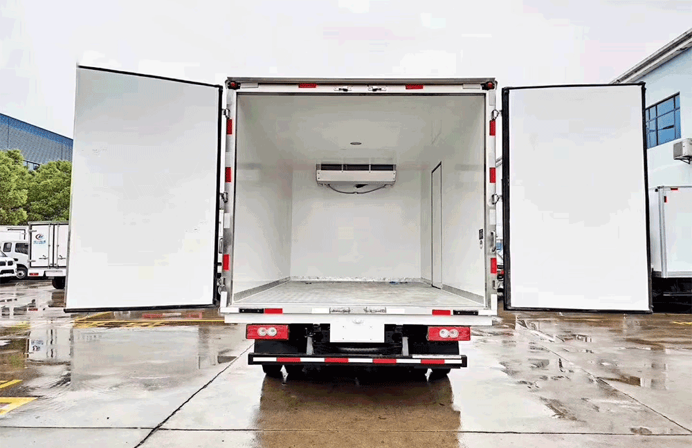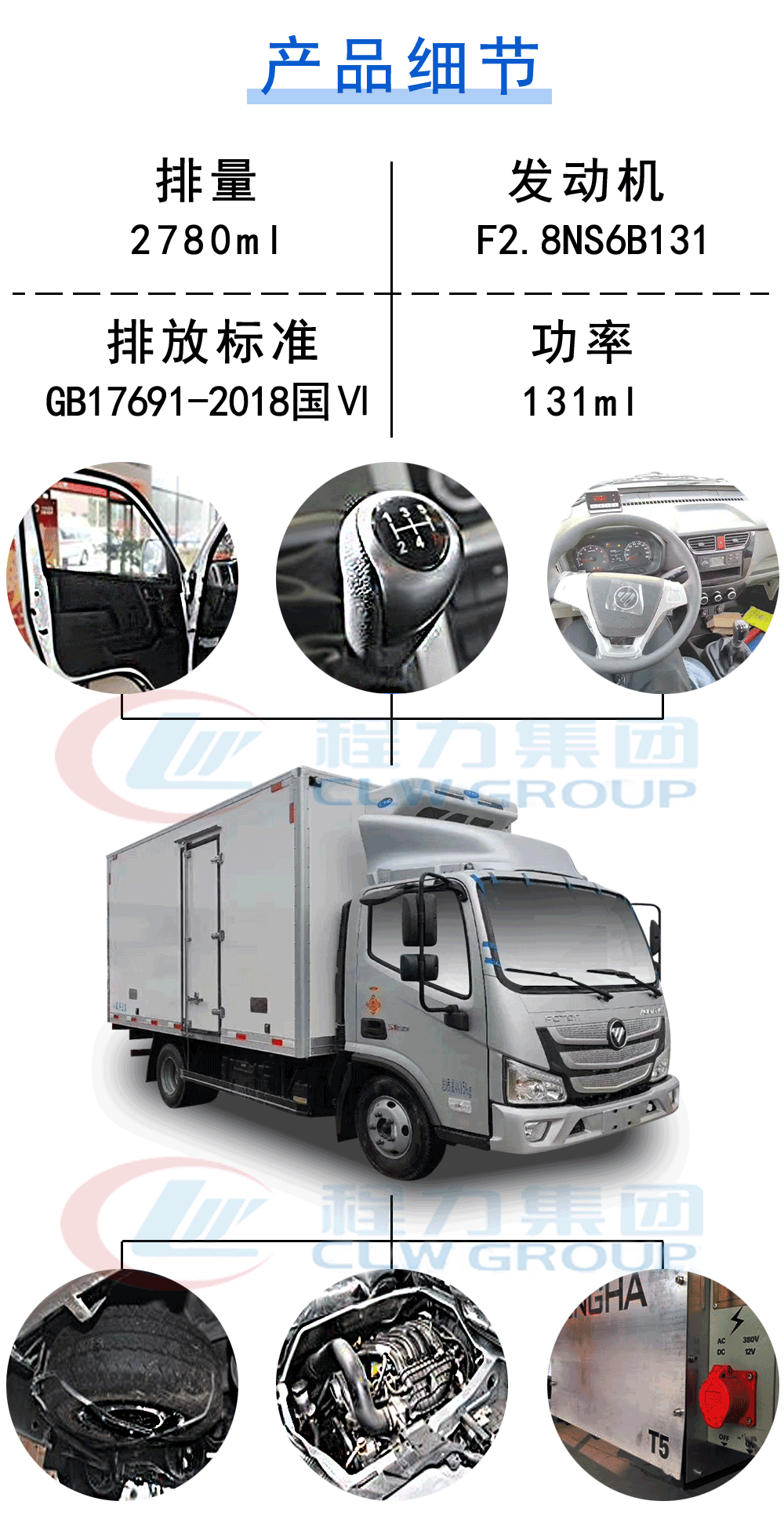 其他 | 1.选装导流罩;选装两侧单、双、无侧开门;选装同等功率制冷机组,外观形状可不同.2.ABS型号及厂家对应关系:液刹:ABS系统型号:YF8;生产企业:武汉元丰汽车电控系统有限公司.气刹:ABS系统型号:ABS-VI.E;生产企业:广州瑞立科密汽车电子股份有限公司.3.F2.8NS6B131、F2.8NS6B156发动机最大净功率分别为93kw、112kw.4.选装前围及前部灯具,前下视镜为选装件可不装,选装排半驾驶室,排半驾驶室对应货箱内部长度为3700mm,单排驾驶室对应货箱内部长度为4080mm.5.侧防护的连接方式是与货箱横梁螺栓连接,侧防护材料为冷板B-2.0/20,选装材料为20号钢的侧防护、选装铝合金6061-T6侧防护.后防护连接方式是与车架纵梁螺栓连接,后下部防护装置材料为Q345A,选装材料为AL6082-T6的后下部防护装置。后部防护装置截面尺寸100×50mm,后防护距离车辆离地高度470mm;6.发动机F2.8NS6B131、F2.8NS6B150、F2.8NS6B156对应油耗值为10.8;7.货厢顶部封闭,不可开启.8.准拖挂车总质量为3500kg,中置轴挂车的牵引杆深入量750mm,中置轴牵引杆连接器最大负荷350kg. |
