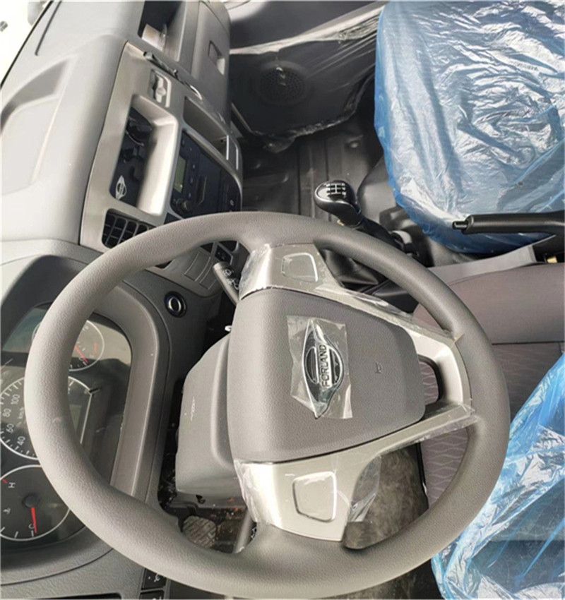 底盘配置:1700单排前翻驾驶室,2850轴距,Q23-115C60全柴115马力,5档变速箱,6.50R16钢丝胎, 原装空调,动力转向,可调方向盘,离合助力,ABS,油刹