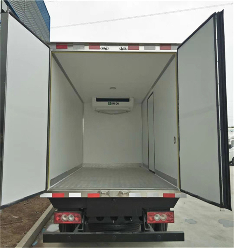 厢体工艺: 厢体材质采用内外玻璃钢,中间8CM聚氨酯保温板,后双开门,厢体右侧靠前选装开侧门,底部铝花纹板,前部排水孔,门边条采用迷宫式橡胶密封条,铝合金型材包边,不锈钢包角,不锈钢门锁,不锈钢门框及合页,厢体内节能LED照明灯。