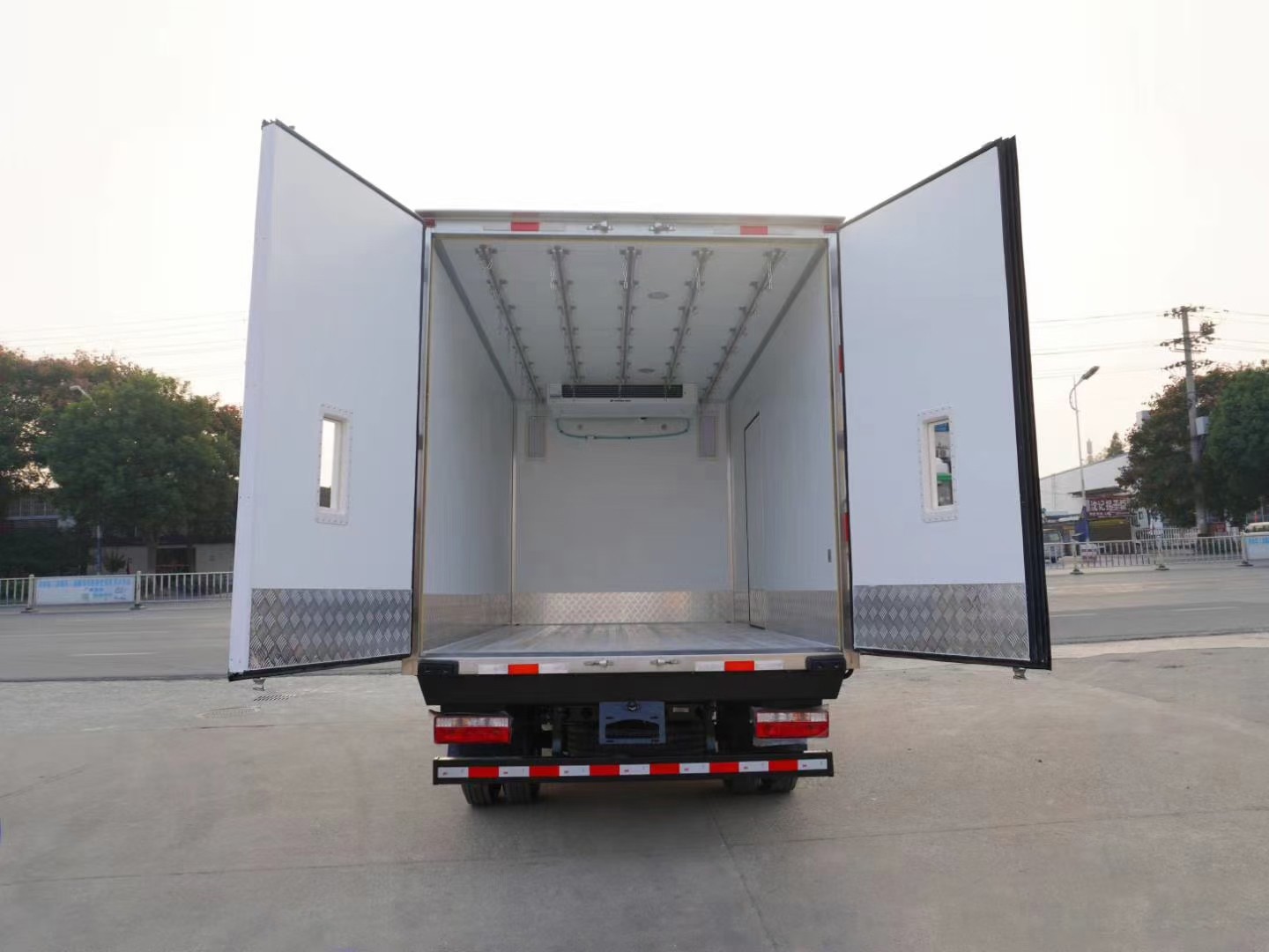 厢体工艺: 厢体材质采用内外玻璃钢,中间8CM聚氨酯保温板,后双开门,厢体右侧靠前选装开侧门,底部采用花纹防滑铝板,前部排水孔,门边条采用迷宫式橡胶密封条,铝合金型材包边,不锈钢包角,不锈钢门锁,不锈钢门框及合页,厢体内节能LED照明灯。